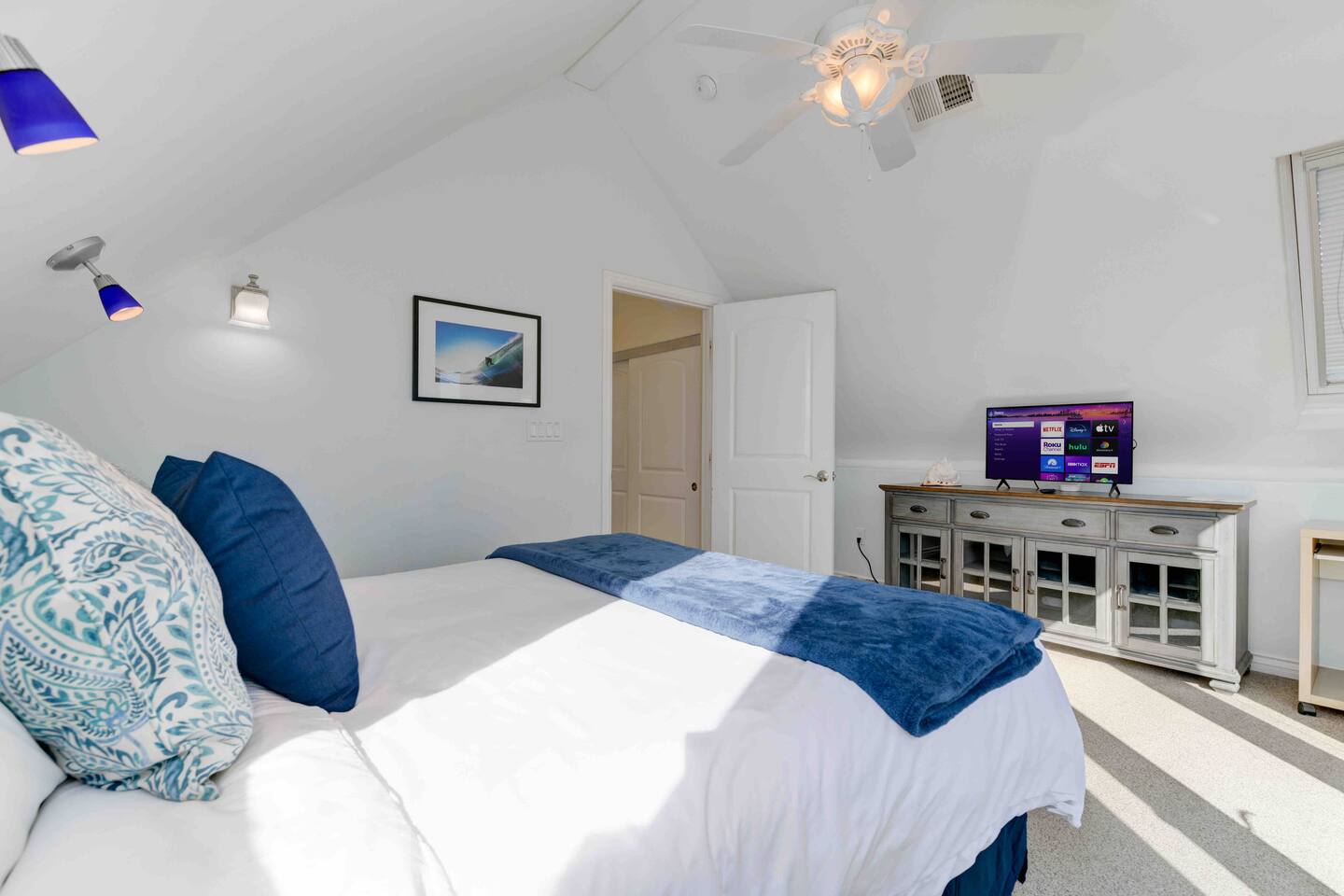 First Floor: The first floor of our home boasts a garage that comfortably accommodates a mid-size SUV and a mid-size economy car. Along with parking, the garage also features a washer and dryer for your convenience. The main highlight of the floor is the cozy queen-sized bedroom, equipped with a ROKU TV and an ensuite bathroom. The room can be secluded from the main entryway with a sleek pocket door. There is also a door within the bedroom that allows direct access to the lovely brick patio. A wet bar in the room provides convenient access for all culinary needs, especially when grilling and preparing food on the patio. Second Floor: Our second floor living space boasts an ocean view living room, featuring a cozy sectional couch and a warm fireplace. The 72" dining table is the perfect place to gather with friends and family, seating up to 8 guests. Entertainment is taken care of with the 40" ROKU TV. The kitchen has been updated with stainless steel appliances and is fully stocked, making meal prep a breeze. The sleeping arrangements include a comfortable king-size bed and a trundle bed with two twin beds. The bathroom is a highlight, with a walk-in shower and double vanities for added convenience. Third Floor: This cozy bedroom boasts a lovely small balcony with breathtaking ocean views, the perfect place to relax and take in the surroundings. The comfortable queen-sized bed is the centerpiece of the room, offering a peaceful night's sleep. A convenient workspace with desk and chair is available for those needing to stay productive. The adjacent bathroom features a walk-in shower and double vanities for added comfort. Entertainment is taken care of with the ROKU TV. The added bonus of a second balcony off the back of the room provides even more opportunities to enjoy the surroundings. Outdoor Space: This property offers a range of outdoor amenities designed to make your stay as comfortable and enjoyable as possible. The outdoor shower provides a convenient way to wash off the sand before entering the home. Cooking up a delicious meal is easy with the outdoor gas BBQ, and outdoor seating with an umbrella is available for dining al fresco. The garage provides ample parking space for a mid-size SUV and a mid-size economy car. The butterfly garden is a special feature of the property, frequently visited by local butterflies who feed on the blooming milk weed. The homeowners love to see pictures from guests who get to experience this unique and beautiful visit.
